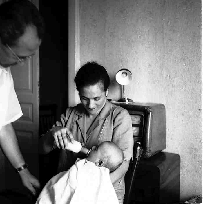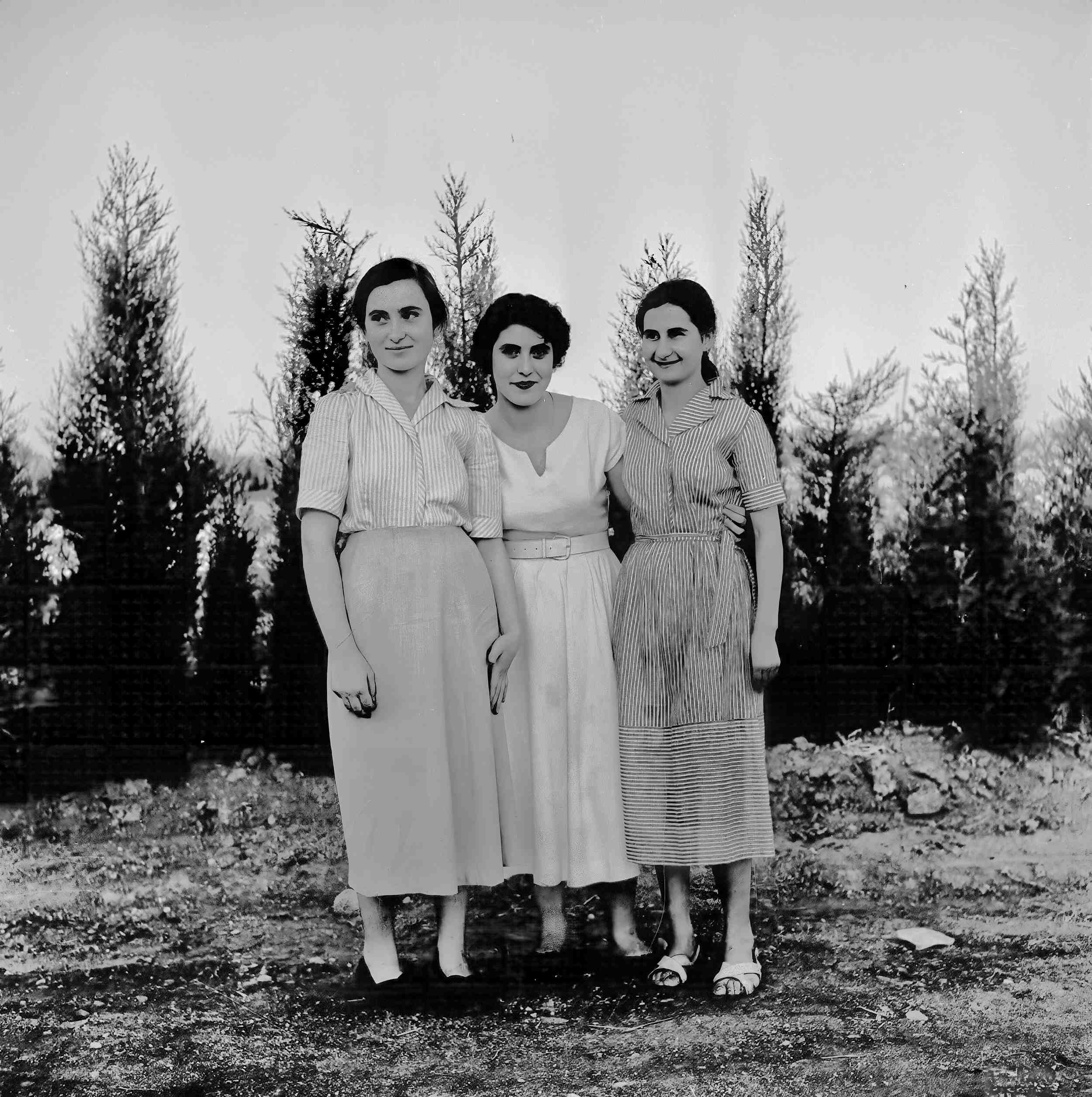 In this final set of images from 1957, there are 47 photographs. The series opens with an image of three women. The person in the middle is the privileged one, a relative of the Baroness Cappelleri, and the two people beside her are the "ladies-in-waiting" serving at the palace. Other images of the palace staff can be seen (images 3 and 9), and finally (image 8) there is a group photo that includes the nobles and the workers in their service.