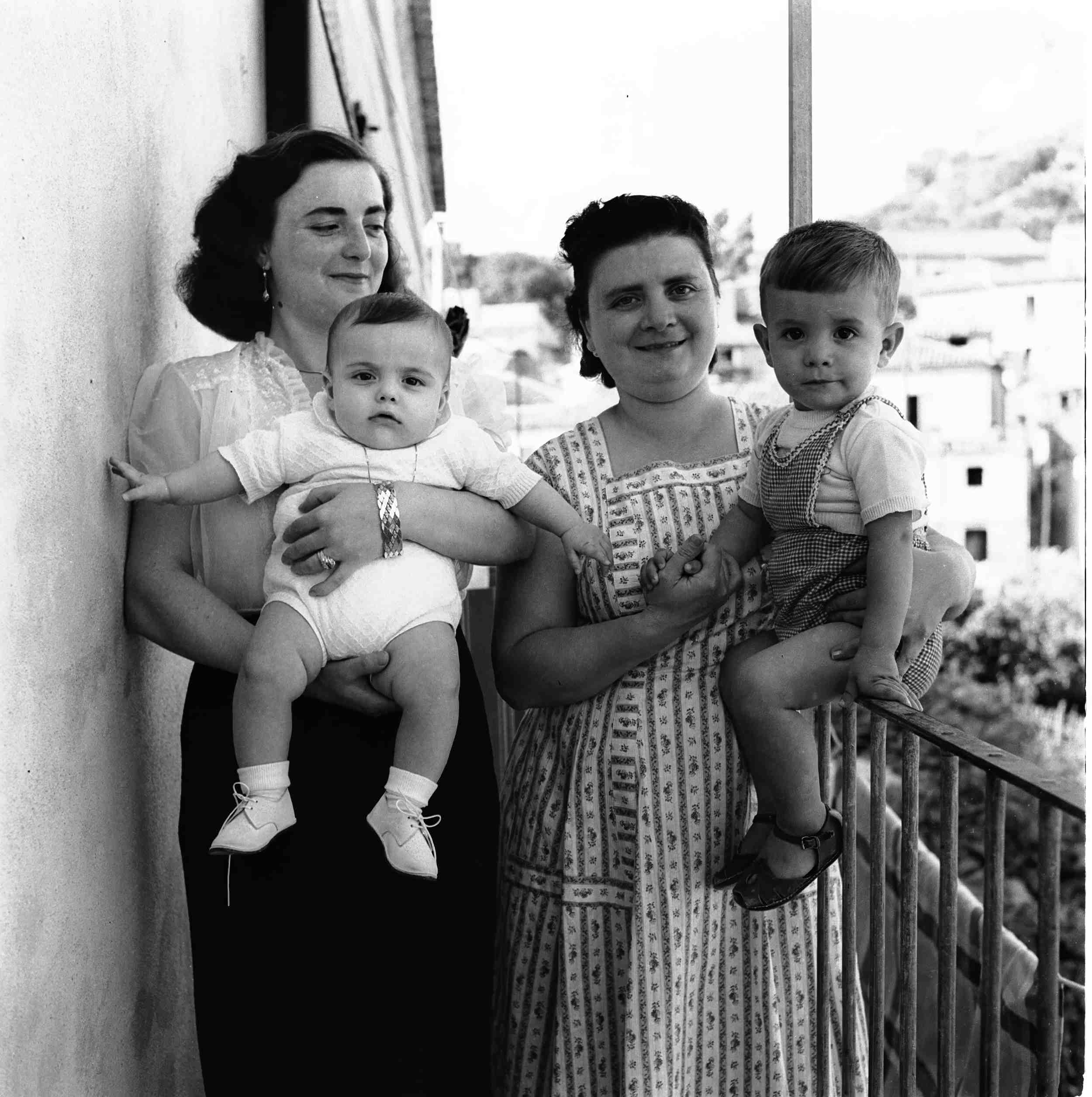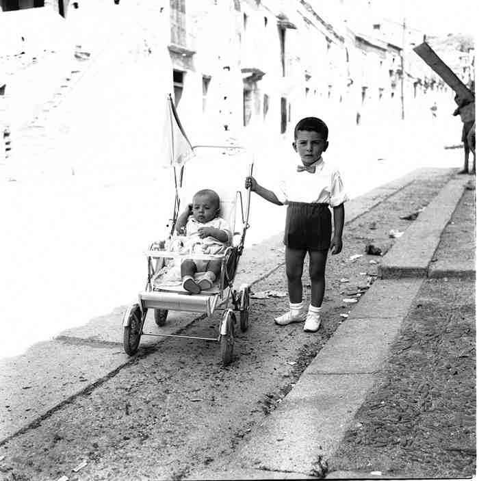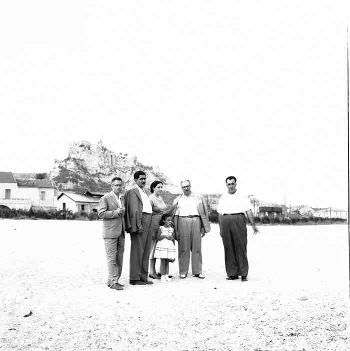We also see photos of a family of friends (Marrapodi) and the various acrobatic stunts their child was subjected to (image 38 to 46). And finally, a group of people, including Don Mico Bova, a local political figure, with the backdrop of Carafa Castle (image 47).