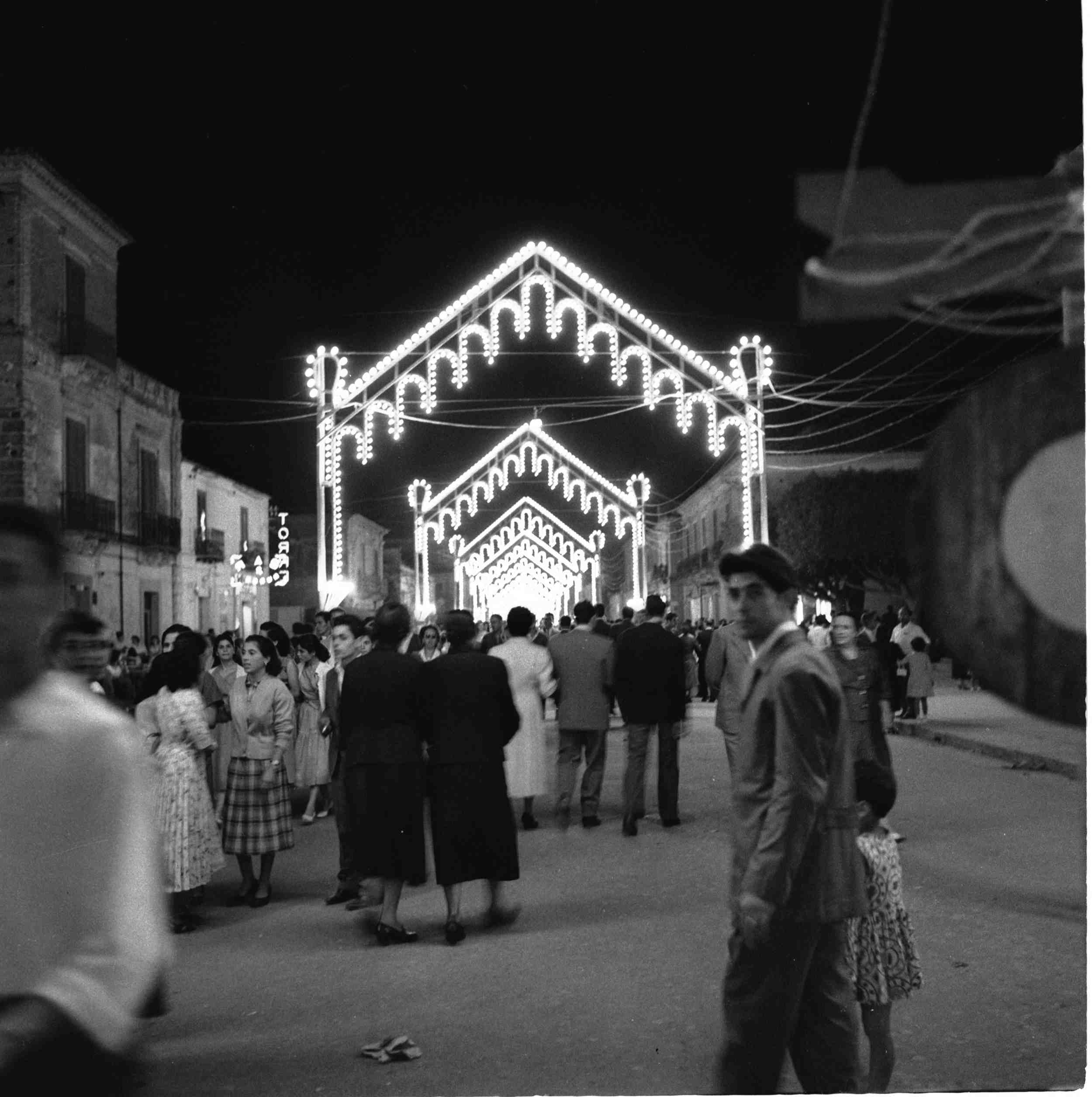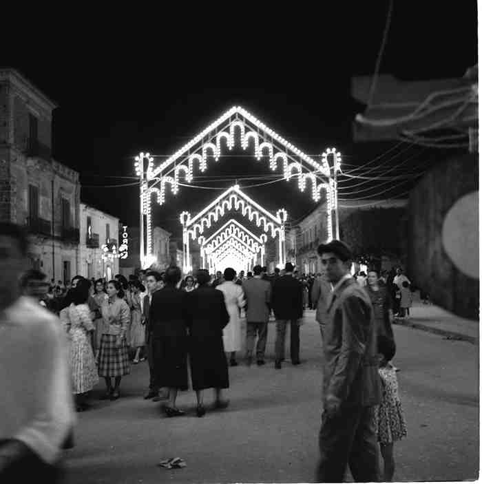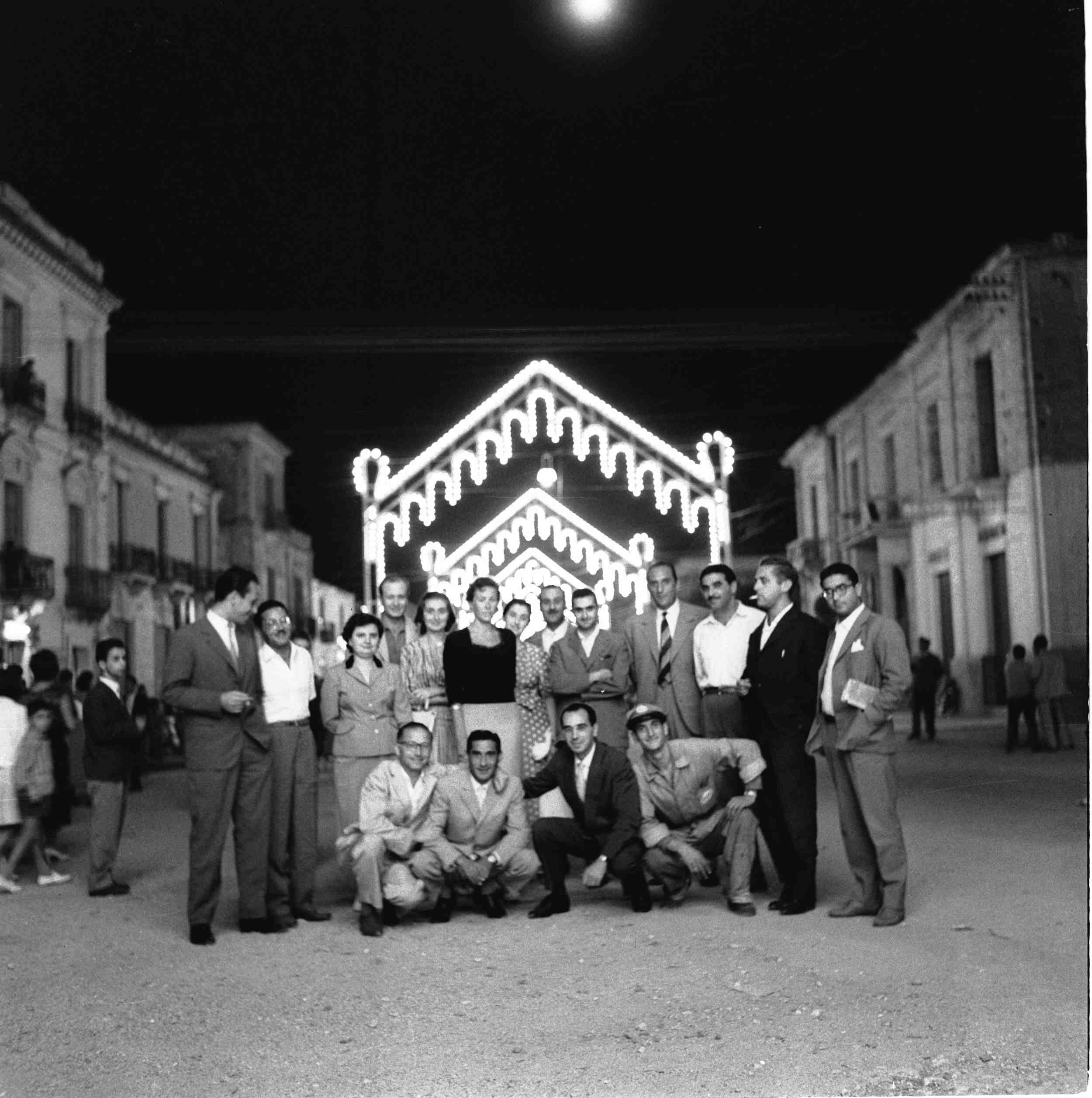 That summer, the family rented an apartment in the Sila mountain range, in a village called Ziia. We enjoyed the fresh air and the friendship of the village people (image 13 to 23), and the children shared and played together (image 31). There was also a trip to the Monastery of San Bruno (image 32). The town of Siderno was well known in the area for its elaborate festive lighting during religious celebrations. In some photos (images 35 and 36), we see a group of friends from Roccella participating in one of these events.